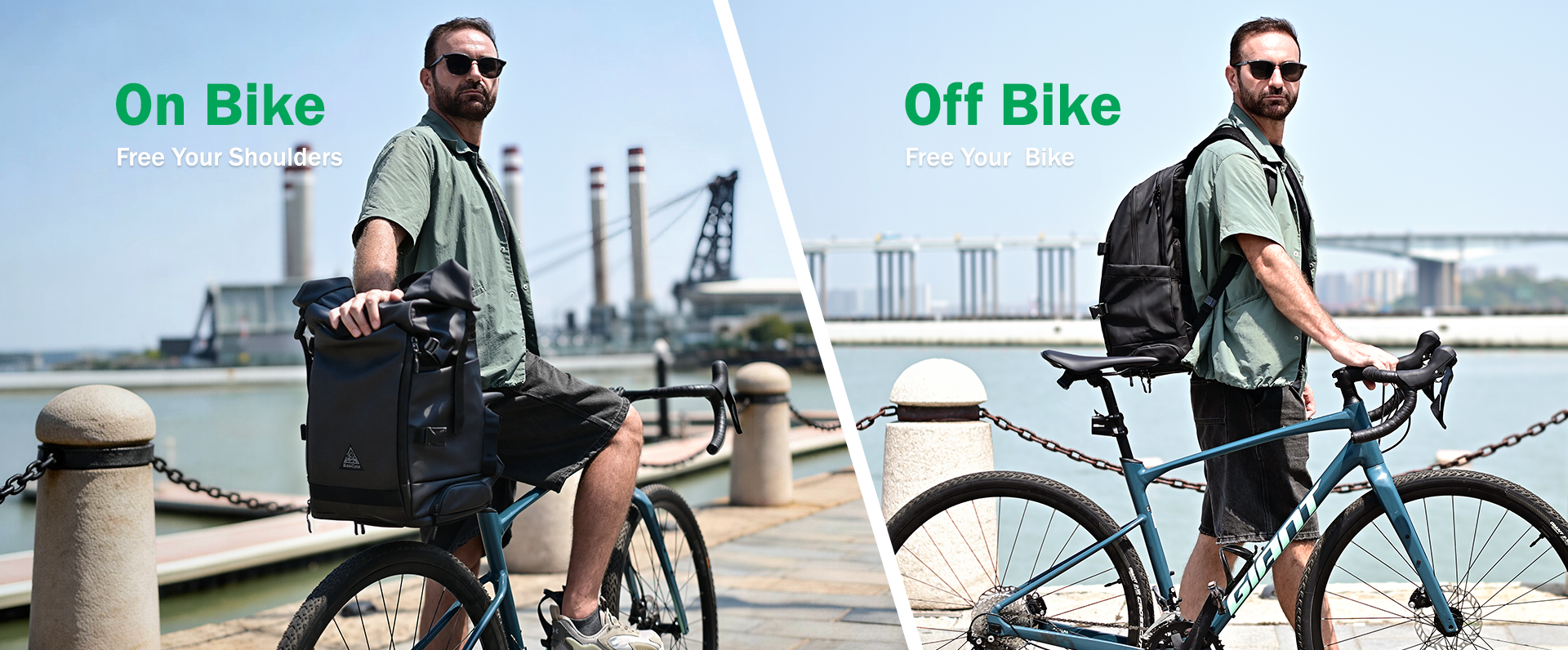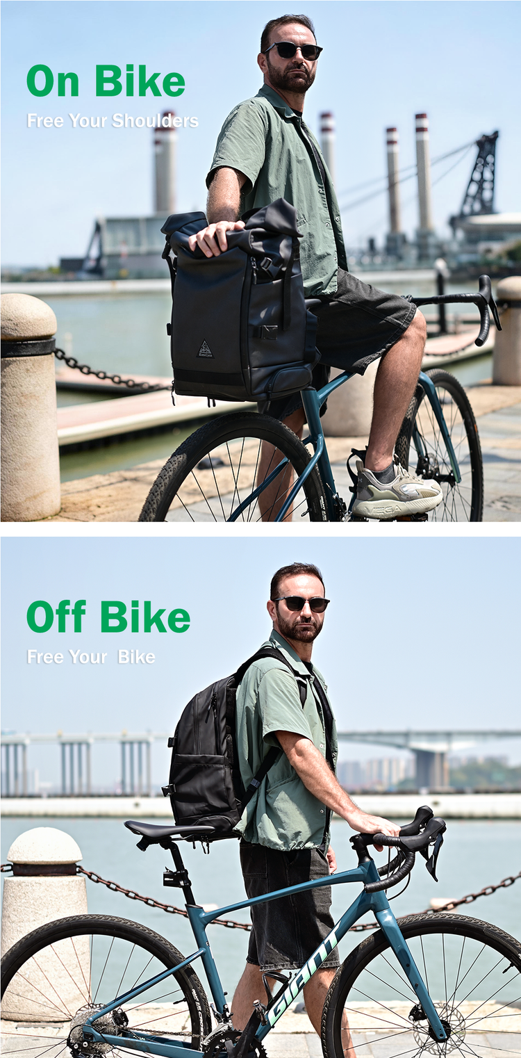A 2-in-1 backpack that frees your shoulders — without compromising the clean and cool look of your bike