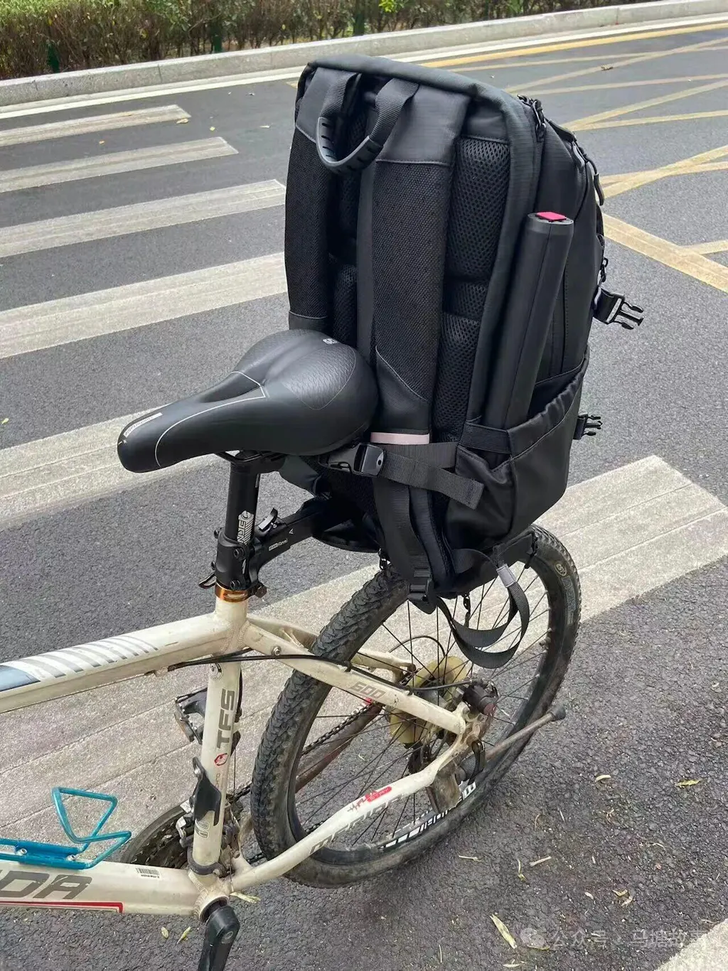 騎行時,它可以將負重從背部轉移到自行車上——下車時,它會立即脫落。
